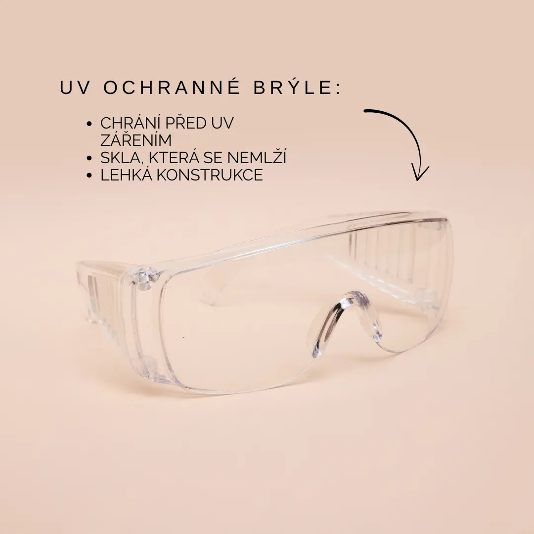 - Nosení ochranných brýlí - 100 % ochrana před UV světlem