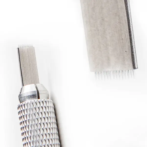 Pero do penu pro stínování a permanentní make-up metodou vláskování a pírkovou technikou by mělo být především pevné a jehly ostré a přesné. Důležité je také zachování maximální hygieny a bezpečnosti při zákroku, a proto by pero mělo být sterilní a na jedno použití. Takový produkt najdete právě v naší nabídce. Stříbrné pero se 7 jehlami má dva řady jehliček, které jsou velmi ostré a perfektně drží tvar. Každý kus je sterilizován gama paprsky a jednotlivě balený, takže se nemusíte obávat o bezpečnost klientky. Uvedená cena platí za jeden nový, nepoužitý kus.