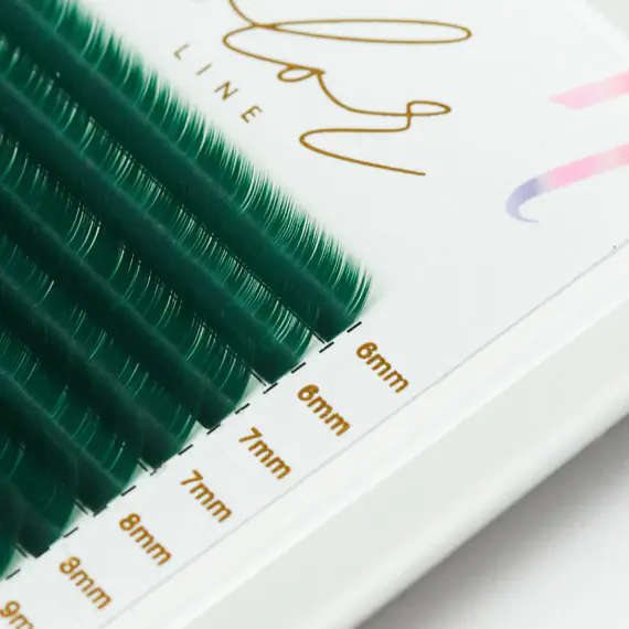 Barevné řasy z řady Color Line v zeleném odstínu jsou ideální volbou pro stylistky, které chtějí svým klientkám nabídnout něco opravdu výjimečného. Color Line GREEN je šťavnatý, intenzivní odstín, který oživí pohled a dodá mu jedinečný charakter. Zelené řasy krásně zvýrazní oči a skvěle fungují v odvážných, módních stylech — od jemných akcentů v koutcích oka až po výrazné, umělecké aplikace.